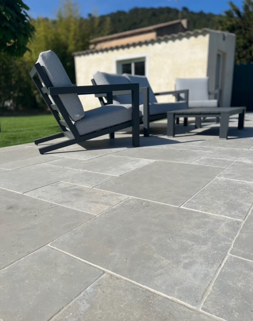 Le dallage terrasse permet de créer une véritable pièce de vie extérieure. Grâce à la pose de dalles de terrasse, il est possible d’obtenir une surface plane et confortable pour installer un salon de jardin, un espace repas ou un coin détente.