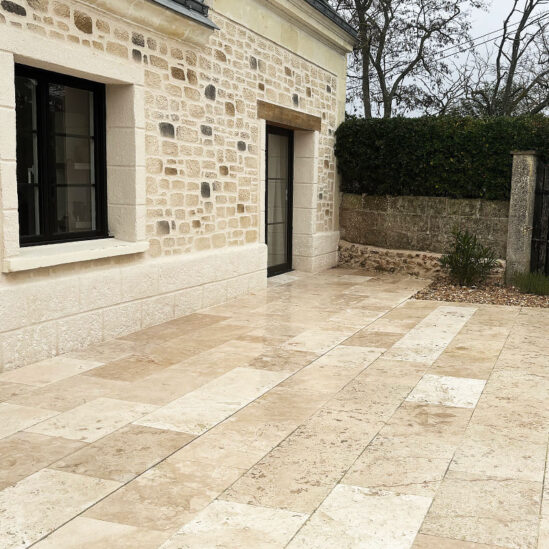 Oui, un dallage extérieur conçu pour un usage extérieur est spécialement fabriqué pour résister à l’humidité, au gel et aux variations de température.
