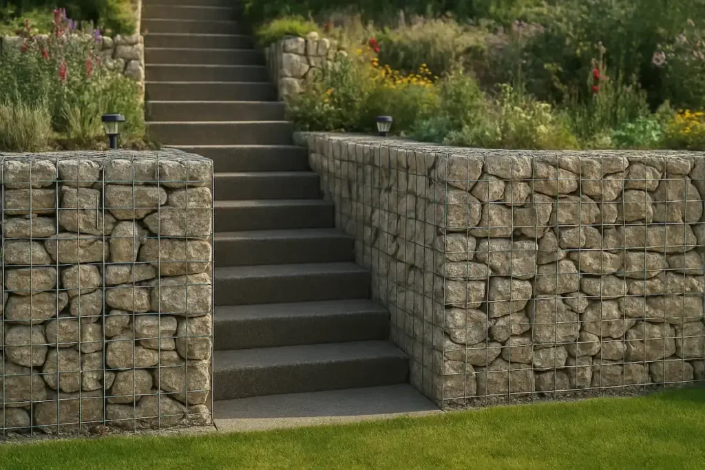 Grâce à leur structure composée de pierres pour gabion, ces ouvrages permettent de stabiliser un terrain tout en conservant un rendu esthétique naturel.